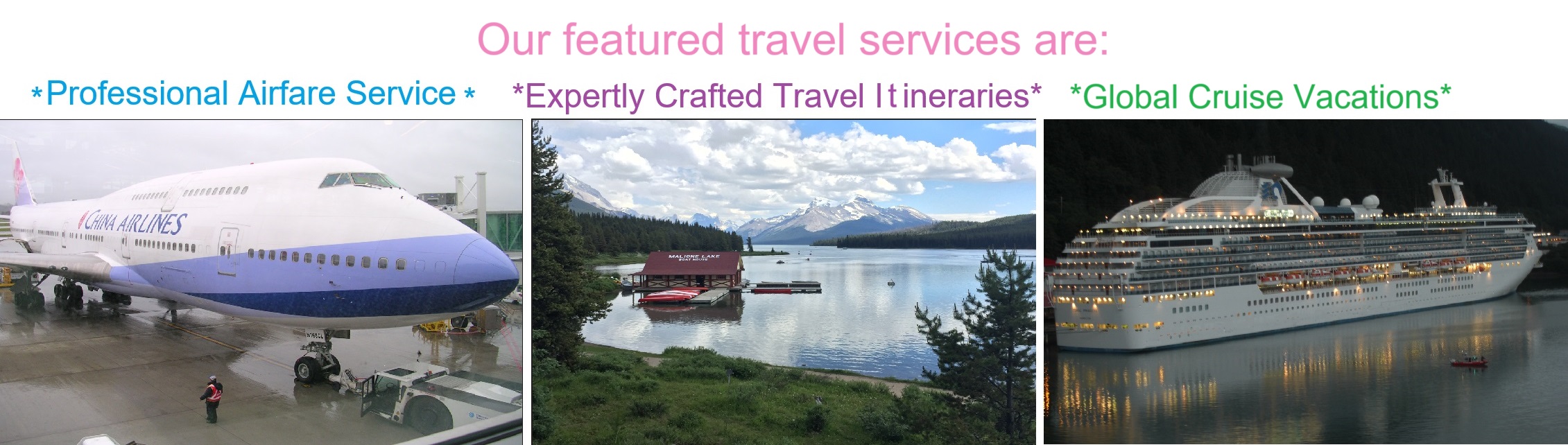 世界各地機票服務; 旅遊設計規劃; 提供各地郵輪旅遊